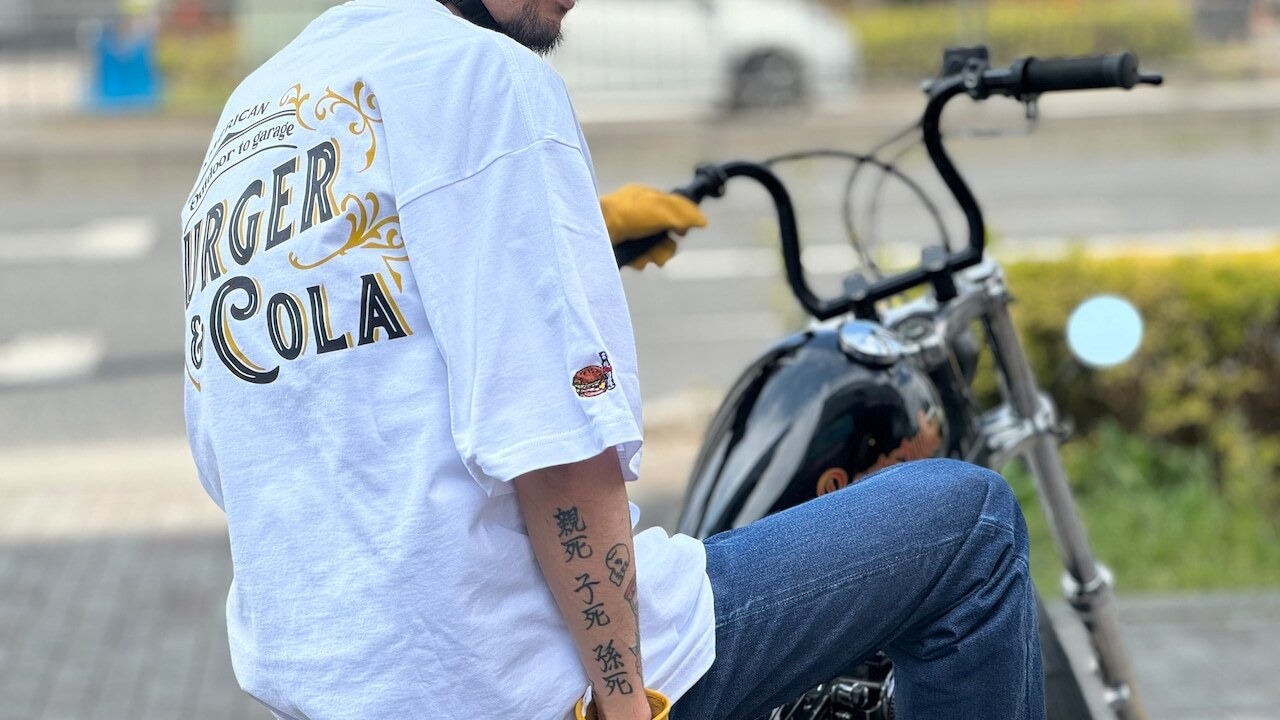 袖にはB&Cお馴染みのハンバーガーとコーラの刺繍も◎